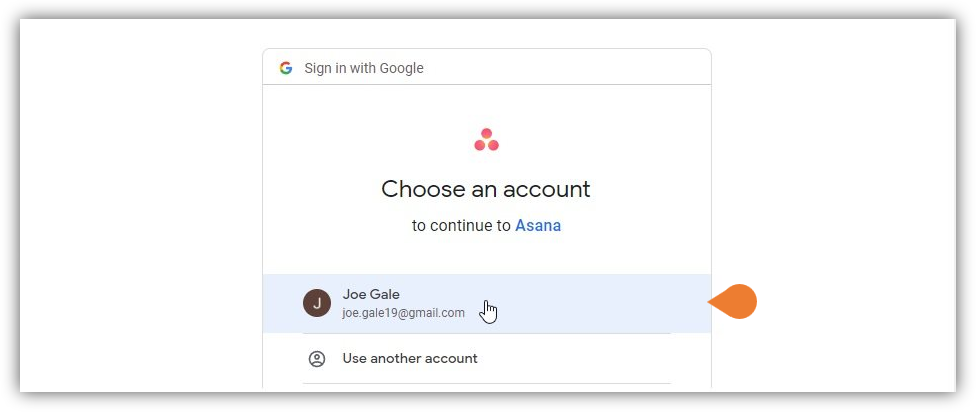 - You will be directed to the Sign in with Google page, find and select the email that you want to use.