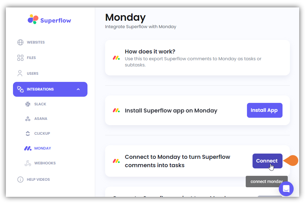 IMPORTANT NOTE: This is a required step before you can connect to Superflow with Monday.com. Ensure that Superflow is installed on Monday.com before connecting your Superflow account.