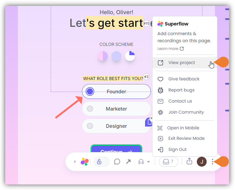 In this article, you will learn how to integrate Superflow with Slack. Access the Superflow Dashboard by going to app.usesuperflow.com. Alternatively, when you are in Review Mode, you can use the method below:- Find the Superflow Toolbar and click the More Options icon.