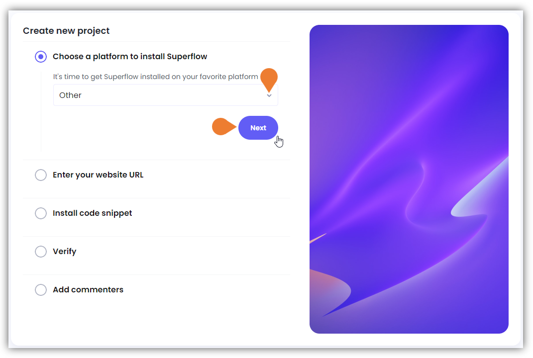 - In the Choose a platform to install Superflow section, click the drop-down arrow, select the appropriate platform, and click Next.