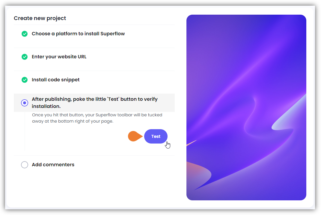 - Once the testing stage is completed, you will be directed to the Add Commenters section to add commenters to your new project.