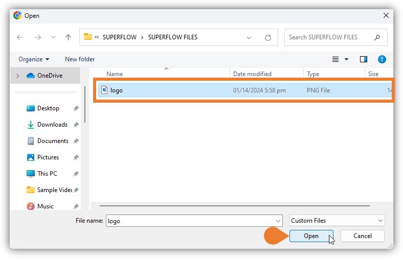 - In this example, we will customize the Superflow Toolbar Logo. Go to the Upload Superflow Toolbar Logo here panel and click the Upload Logo button.