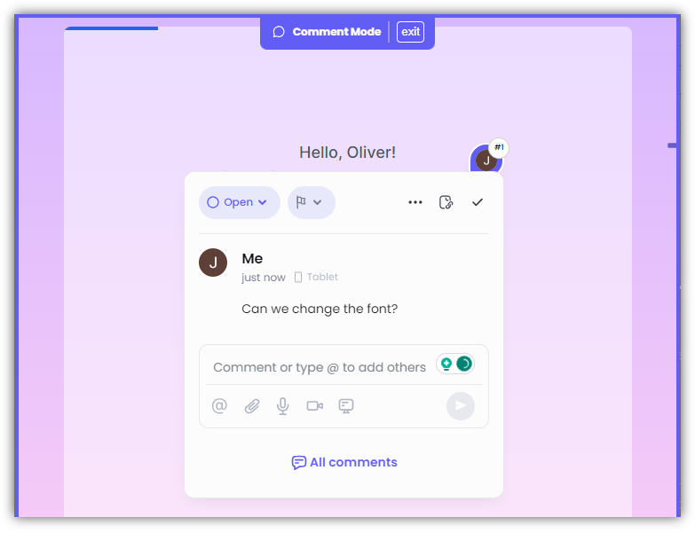 - The Comment Box will appear, enter your comment or type @ to add other users.