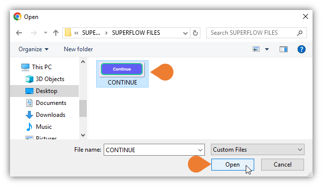 - Click Open to upload the file.