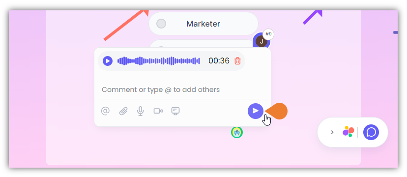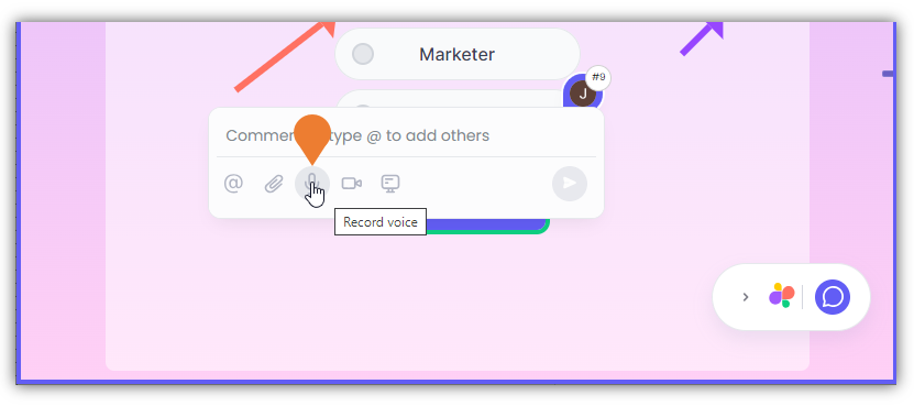 - The Comment Box will appear, click the Microphone icon to select.