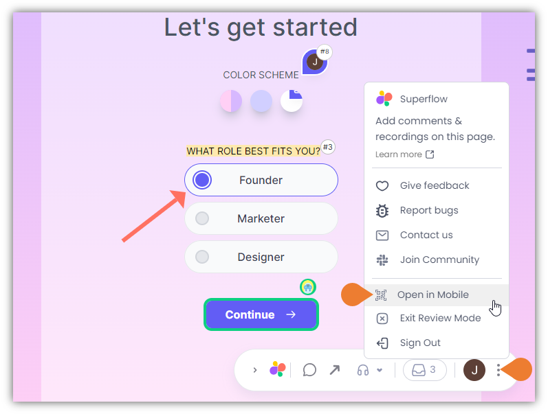 In this article, you will learn how to switch to mobile view. This option enables you to access a page you are working on from your mobile device by accessing the generated QR Code.- Find the Superflow Toolbar and click the More Options icon.