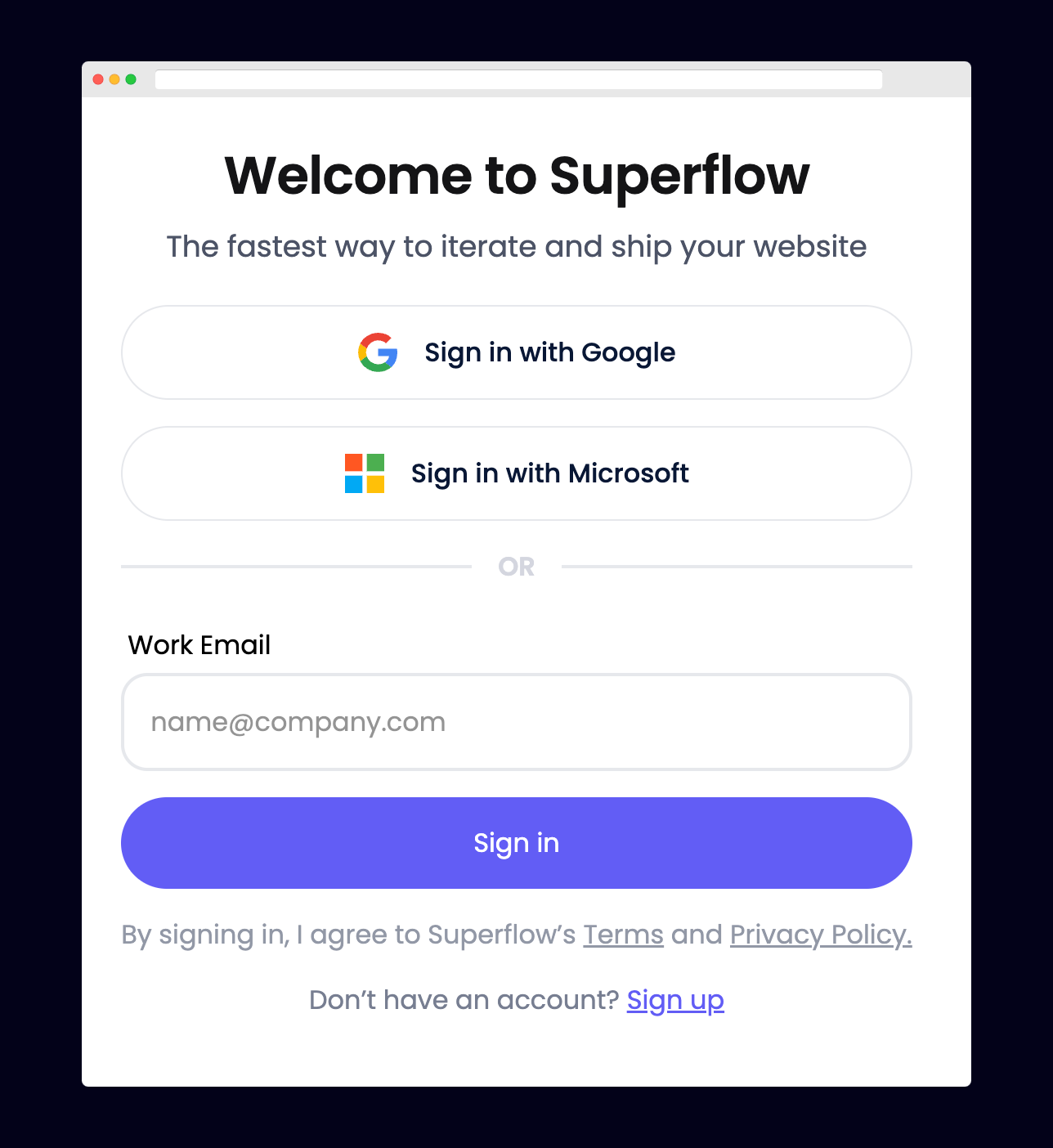 If you haven’t created a Superflow account, enter an email or log in with Google.