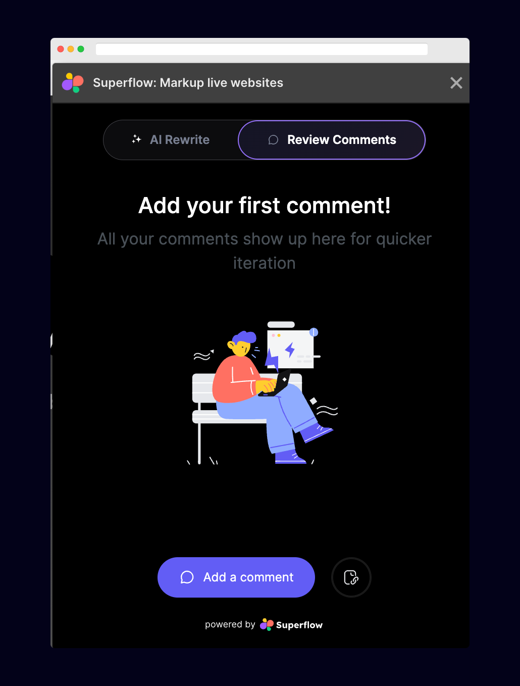Now that you have verified that Superflow has been installed on your Webflow site, navigate to your published site and add?review=true at the end of the URL to enable Superflow.