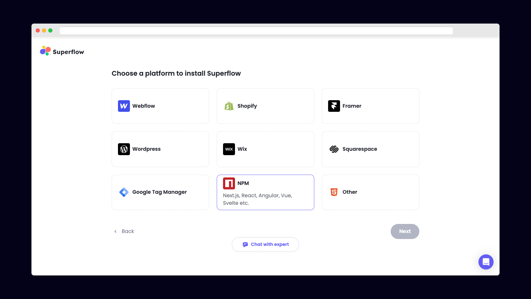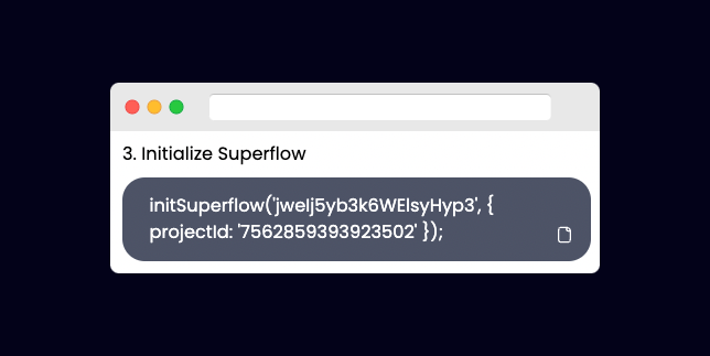 Install the Superflow NPM package with:5) Import Superflow in main.js